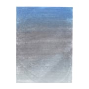 Das Radiant-Muster zeigt einen sanften Farbverlauf vom hellen Zentrum zu tieferen Blautönen mit subtilen gelben Akzenten. So entsteht ein moderner, abstrakter Teppich, der frisch wirkt, ohne grell zu sein. Keine harten Linien, sondern ein fließender Übergang, der das Interieur optisch weicher erscheinen lässt.