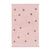 Baumwollteppiche können in den ersten Tagen einige Fasern verlieren.Das ist ganz normal für dieses natürliche Material und lässt nach etwa einer Woche nach. Sanftes Staubsaugen (ohne Teppichbürste und ohne rotierende Bürsten) hält den Teppich frisch und schön, sodass Lou Dots Lila über Jahre hinweg ein stimmungsvolles Highlight im Kinderzimmer bleibt.