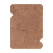 Lege diesen beigen Teppich teilweise unter das Sofa und platziere den Couchtisch auf der breitesten Stelle der Form. So bleiben sowohl die organische Linie als auch der 3D-Effekt sichtbar und der Sitzbereich wirkt als stimmiges Ganzes.