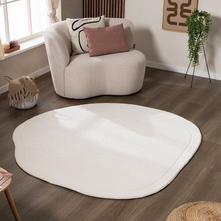 Bringen Sie einen Hauch von Ruhe und Verspieltheit in Ihr Interieur mit dem Teppich Organisch - Halo Stone Creme. Dank seiner organischen Form und der einzigartigen Ausschnittkante strahlt dieser Teppich eine besondere Eleganz aus. Der Niederflorteppich aus 100 % Polyester fühlt sich wunderbar weich an und ist mit seiner Florhöhe von 8 mm ideal für den täglichen Gebrauch. Außerdem ist dieser waschbare Teppich leicht sauber zu halten; Sie können Halo bei 30 Grad in der Waschmaschine waschen. Der organische Teppich Halo bringt, wie der Name schon sagt, einen weichen, fast himmlischen Look in jeden Raum. Perfekt für einen natürlichen und frischen Look!