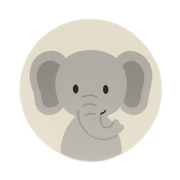 Waschbarer Spielteppich Rund - Sammy Elephant Grau In verschiedenen Größen erhältlich: Ø 80cm, Ø 100cm, Ø 120cm en Ø 140cm.