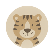 Waschbarer Spielteppich Rund - Sammy Tiger Beige In verschiedenen Größen erhältlich: Ø 80cm, Ø 100cm, Ø 120cm en Ø 140cm.