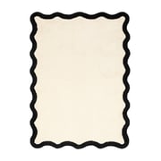 Mit dem Waschbarer Teppich - Hazy Schwarz Creme: verleihen Sie Ihrem Zuhause eine fröhliche und spielerische Note. Die sanft geschwungene schwarze Akzentkante setzt einen kreativen Kontrapunkt zur weichen, cremefarbenen Basis. Die leichte, fließende Form lässt diesen organischen Teppich in Wohnzimmer oder Schlafzimmer sofort lebendig wirken, ohne dass der Raum überladen wirkt. Die Kombination aus Form und Farbe macht ihn zu einem subtilen Design-Akzent.